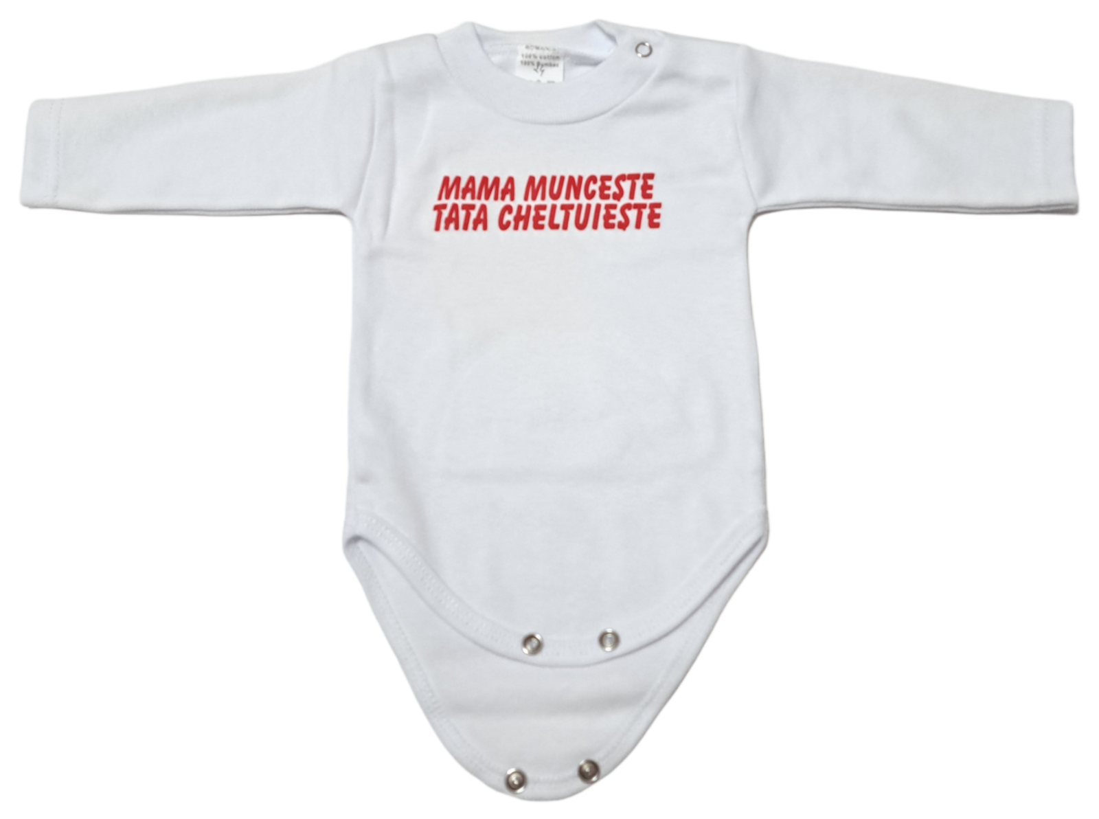 Body maneca lunga cu imprimeu, Deschidere capse la gat si intre picioare