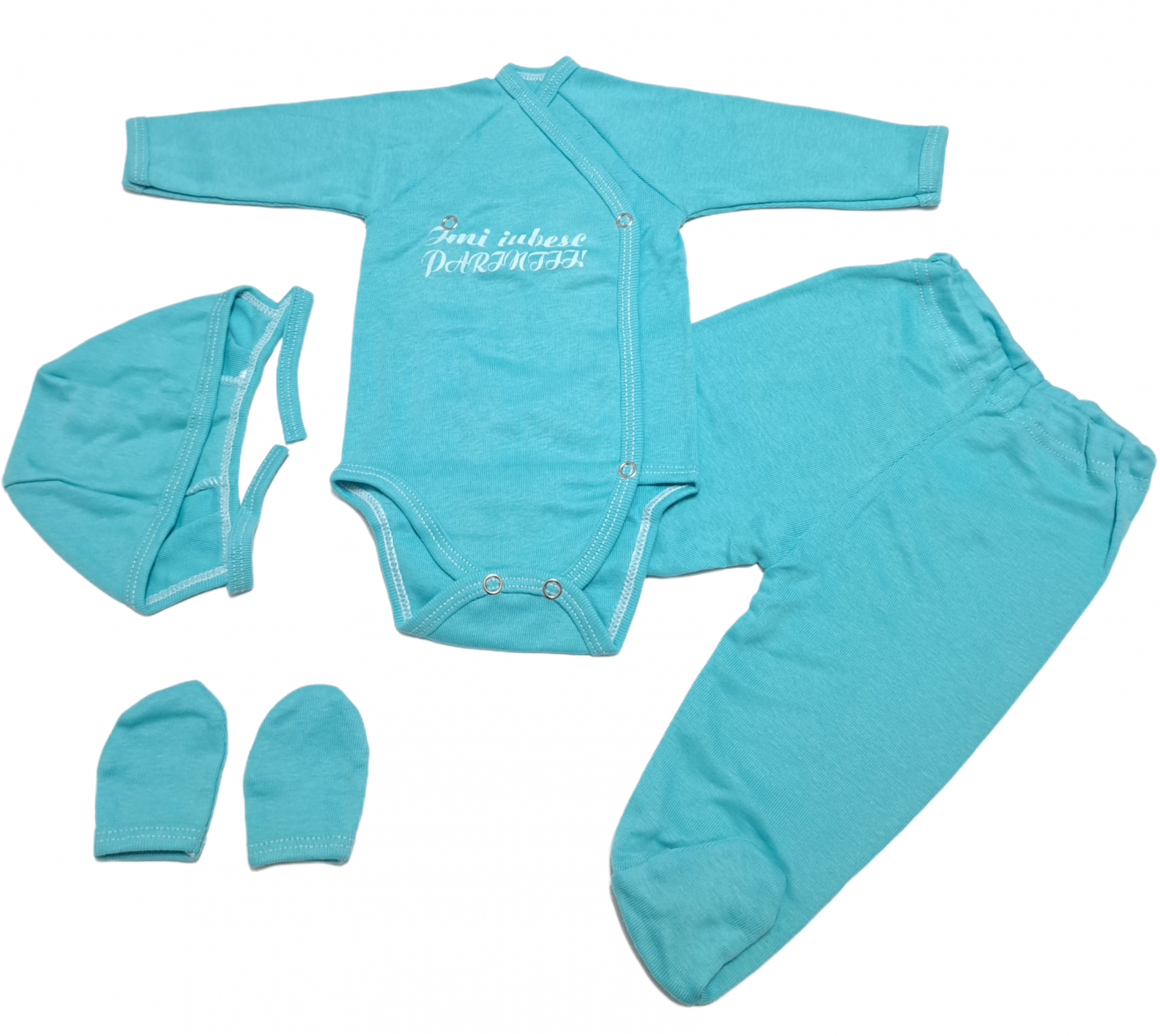 Costumaș 4 piese pentru bebeluși , realizat din bumbac 100% moale și delicat, ideal pentru pielea sensibilă.