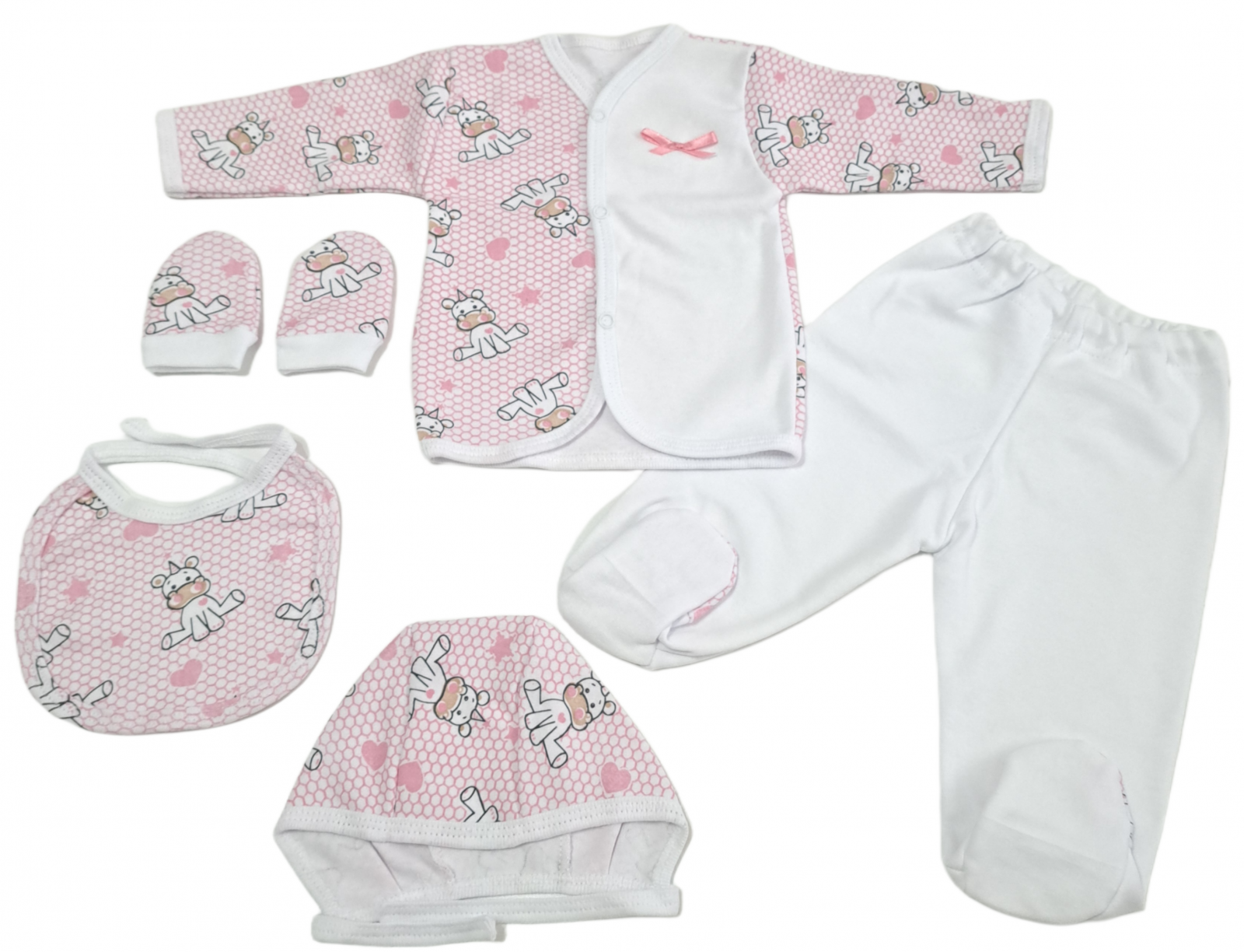 Costumaș nou-născut 5 piese din bumbac 100% – Fabricat în România