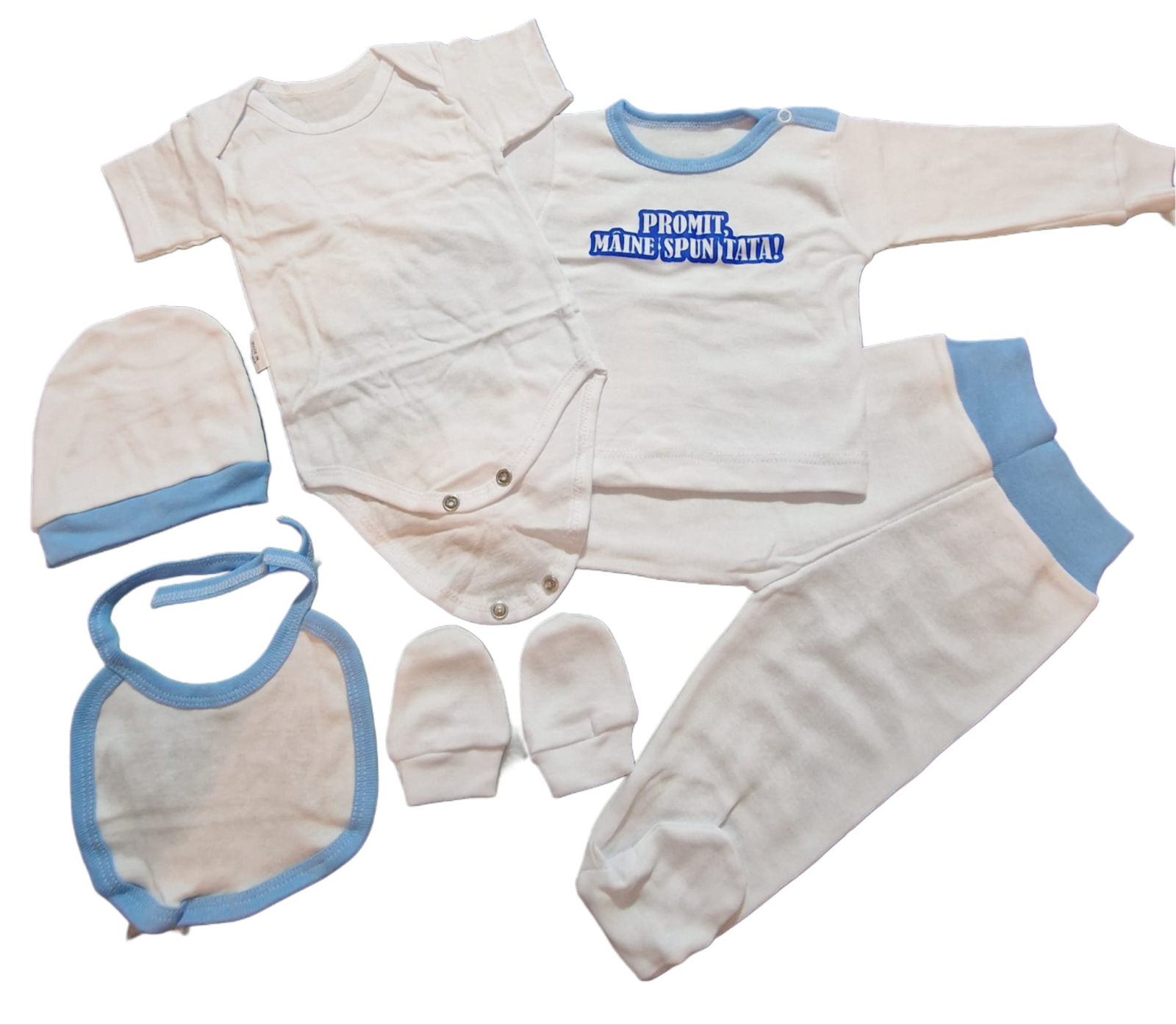 Costumaș 6 piese nou-născut cu imprimeu din bumbac 100% – Fabricat în România