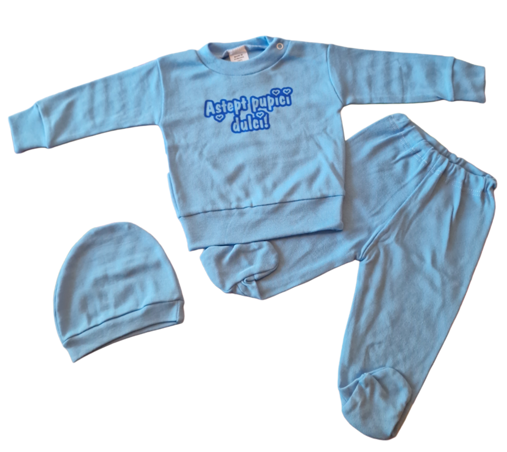 Set 3 piese hăinuțe nou-născut, Fabricat in Romania, Bumbac