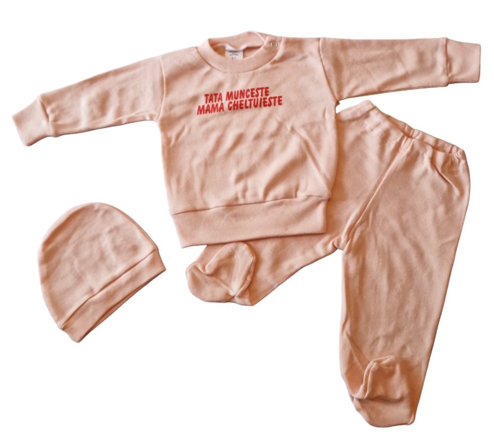 Set 3 piese hăinuțe nou-născut, Fabricat in Romania, Bumbac
