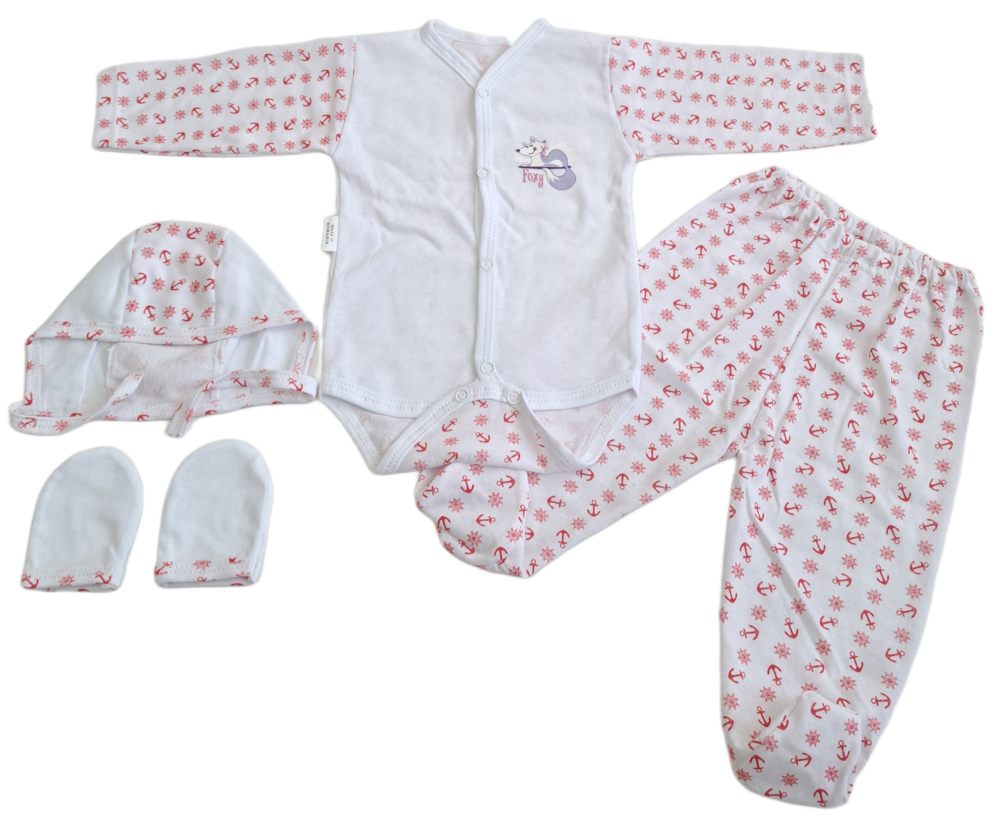Set 4 piese hăinuțe nou-născut, Fabricat in Romania, Bumbac