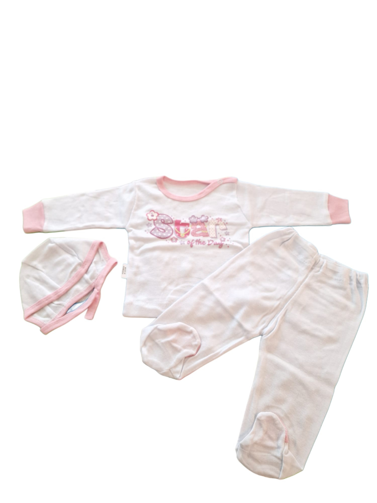 Costumaș 3 piese pentru bebeluși , realizat din bumbac 100% moale și delicat, ideal pentru pielea sensibilă.