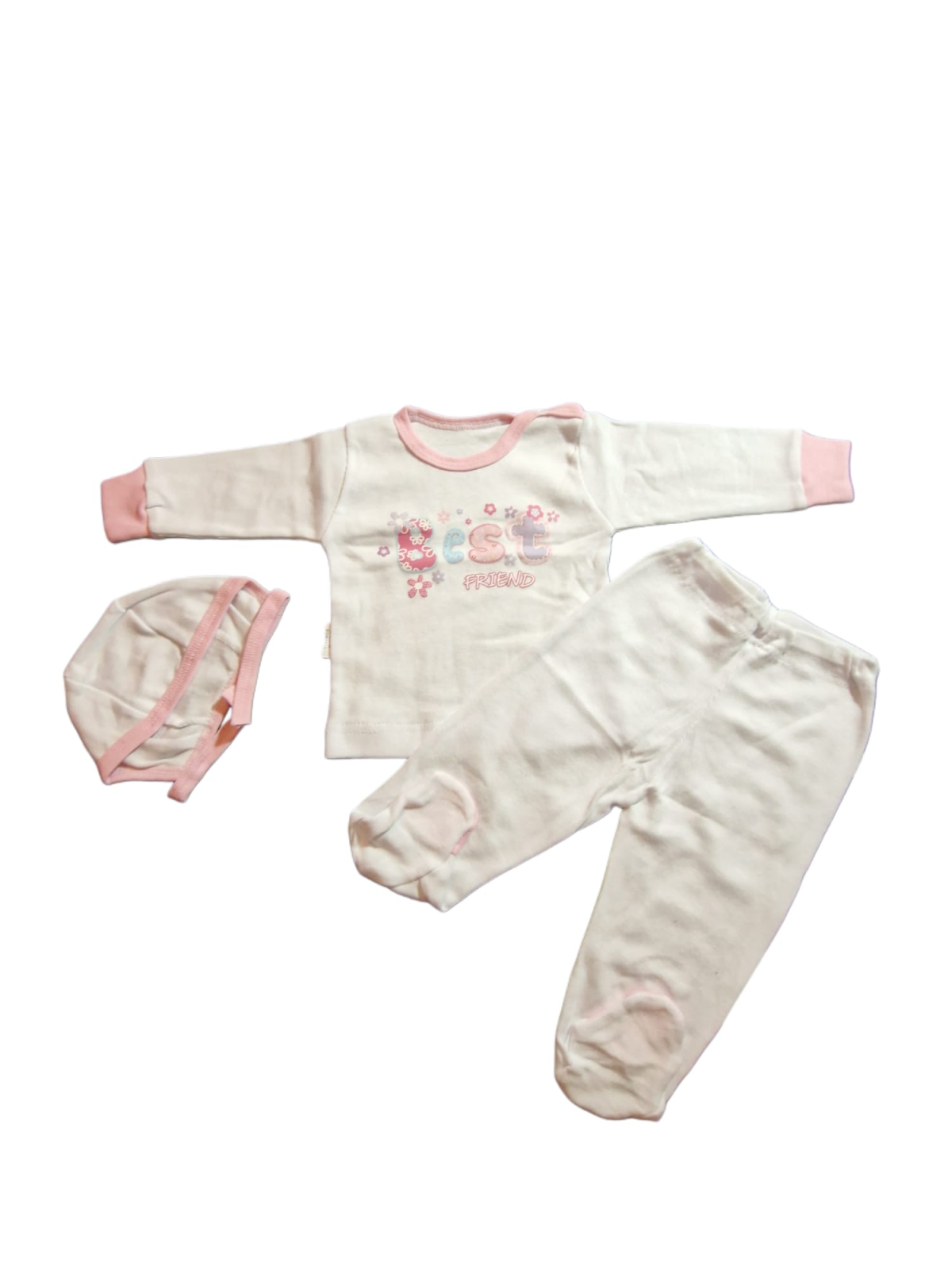 Costumaș 3 piese pentru bebeluși , realizat din bumbac 100% moale și delicat, ideal pentru pielea sensibilă.