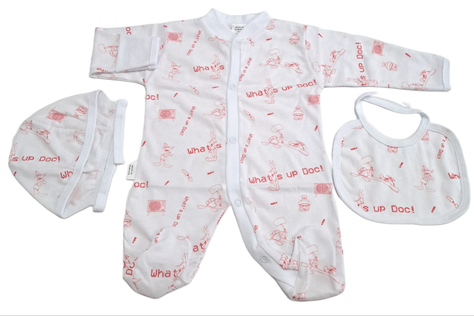Selopeta cu manusi plus fes si bavetica pentru bebelusi, Fabricata in Romania