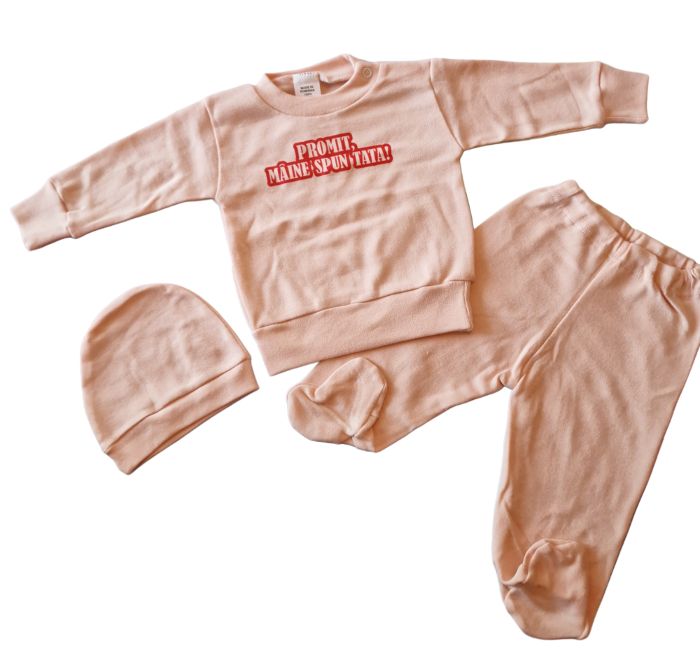 Set 3 piese hăinuțe nou-născut, Fabricat in Romania, Bumbac