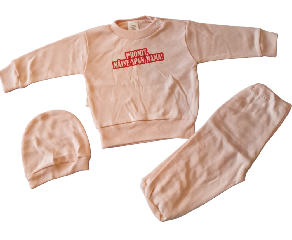 Costumaș 3 piese pentru bebeluși , realizat din bumbac 100% moale și delicat, ideal pentru pielea sensibilă.