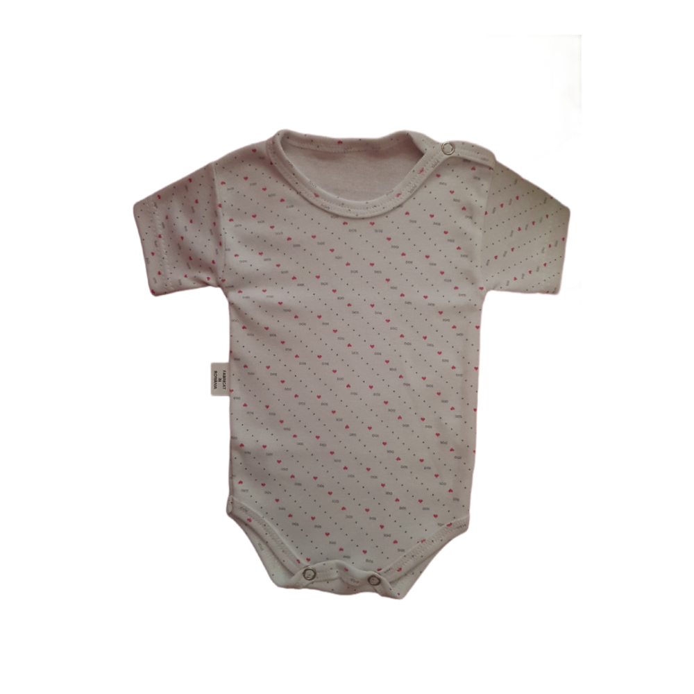 Calitate românească la preț de producător! Acest body cu maneca scurta din bumbac 100% este piesa esențială pentru confortul puiului tău. Fabricat cu drag în România, materialul este moale și lasă pielea să respire.