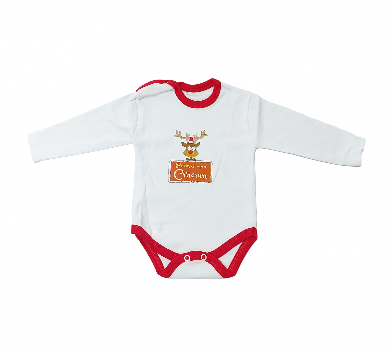 Un body adorabil, perfect pentru sezonul sărbătorilor! Confortabil și moale, realizat din bumbac 100%, cu imprimeu drăgălaș. Ideal pentru ținutele de iarnă ale micuțului tău sau pentru ședințele foto de Crăciun.
