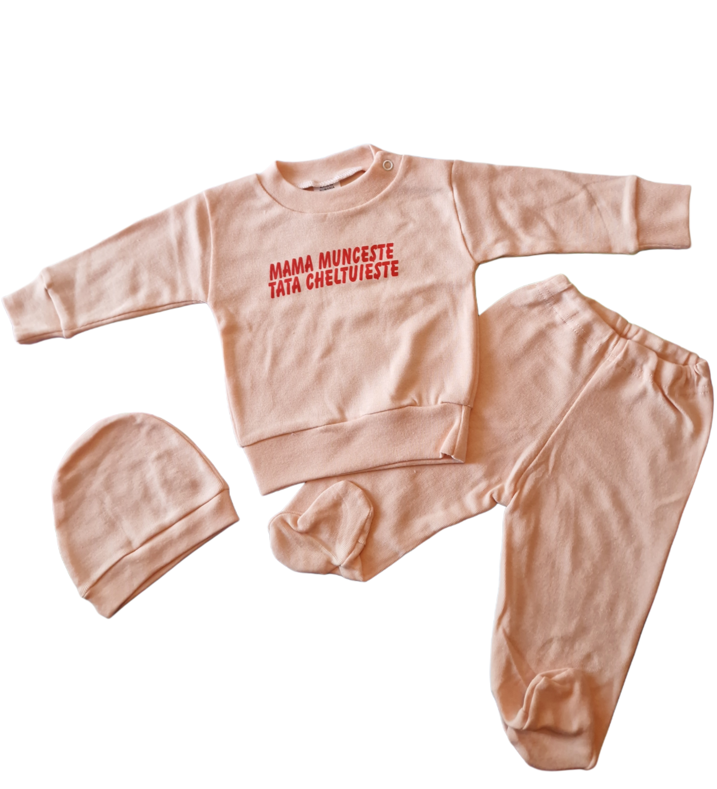Costumaș 3 piese pentru bebeluși , realizat din bumbac 100% moale și delicat, ideal pentru pielea sensibilă.