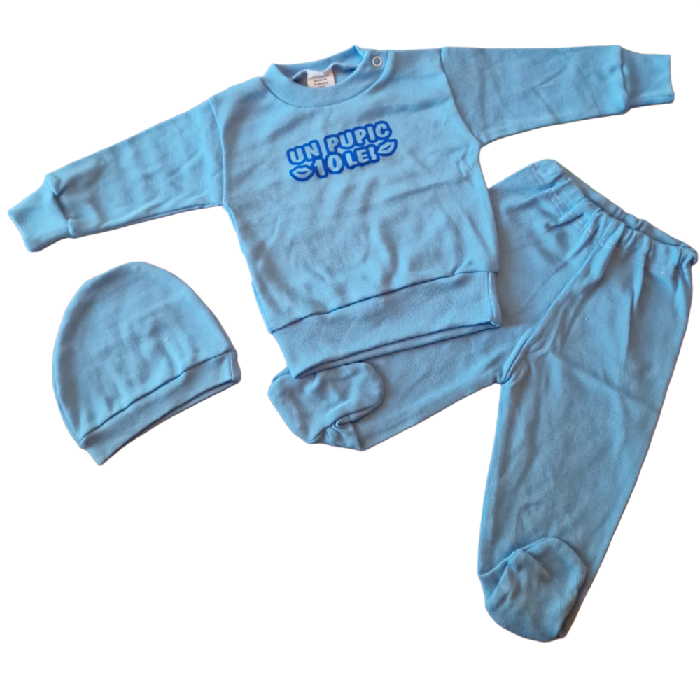 Costumaș 3 piese pentru bebeluși , realizat din bumbac 100% moale și delicat, ideal pentru pielea sensibilă.