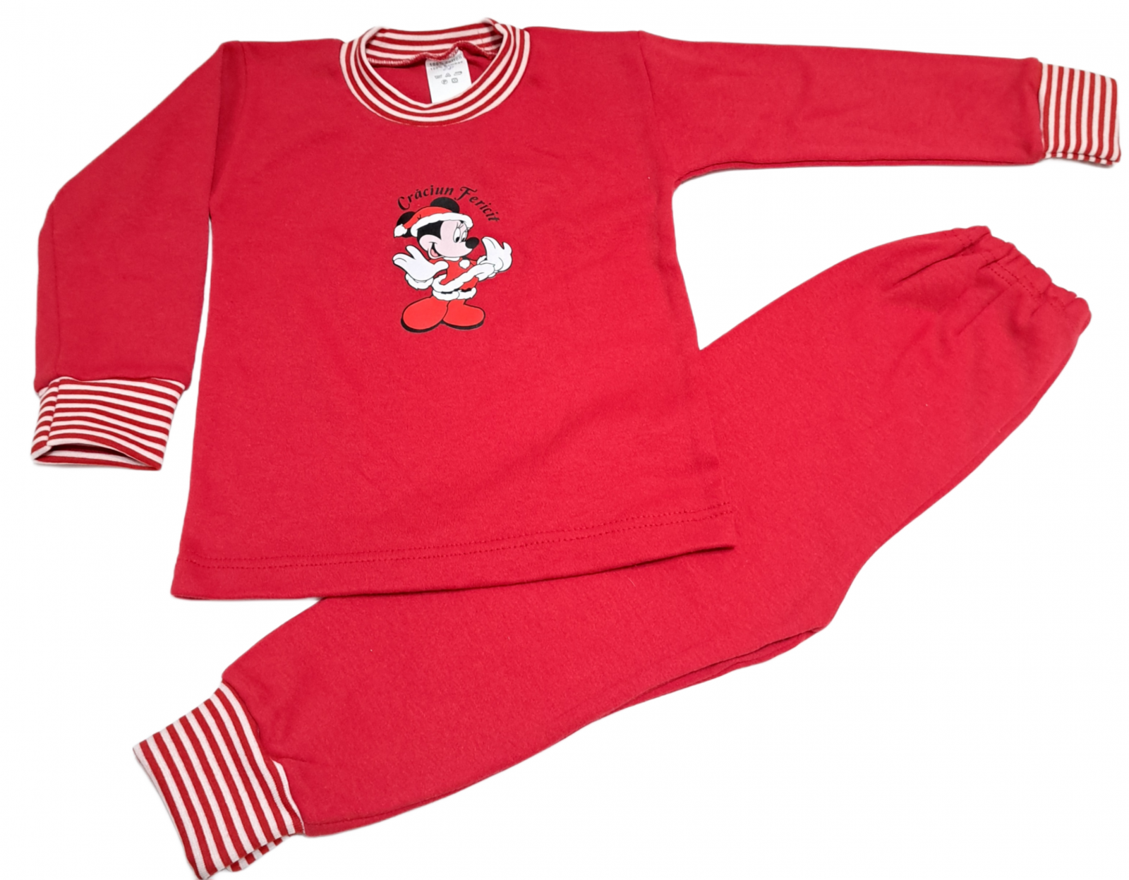 Un set adorabil pentru primele sărbători ale micuțului tău! Costumașul include Bluza cu imprimeu si pantalonași roșii.
