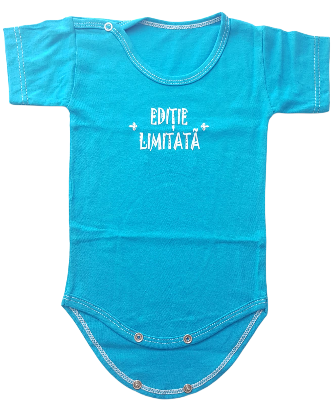 Calitate românească la preț de producător! Acest body cu maneca scurta din bumbac 100% este piesa esențială pentru confortul puiului tău în zilele călduroase. Fabricat cu drag în România, materialul natural este moale și lasă pielea să respire.