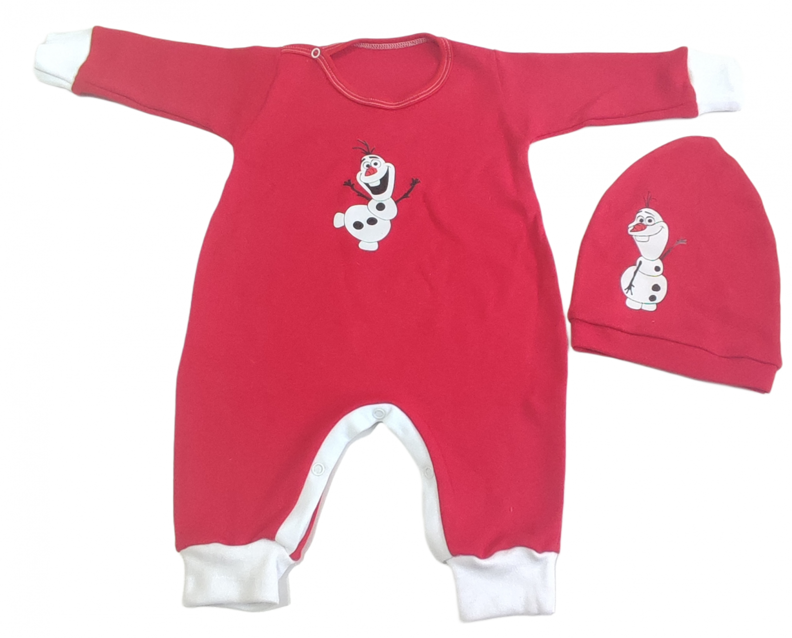 O ținută adorabilă pentru micuțul tău în spiritul sărbătorilor! Salopeta roșie cu imprimeu simpatic  și căciuliță asortată aduce bucurie și confort în fiecare clipă. Realizată din bumbac moale și plăcut la atingere, este perfectă pentru joacă, somn sau fotografii de Crăciun.